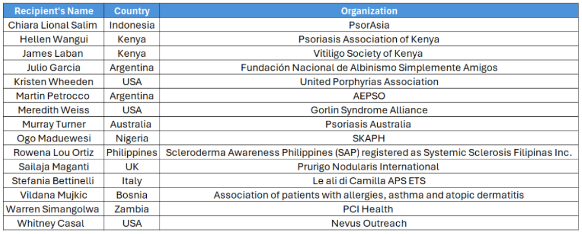 Congratulations to all of the following Patient Expert Scholarship recipients in the 2026 Cohort. GlobalSkin wishes them all the very best on their educational journey.